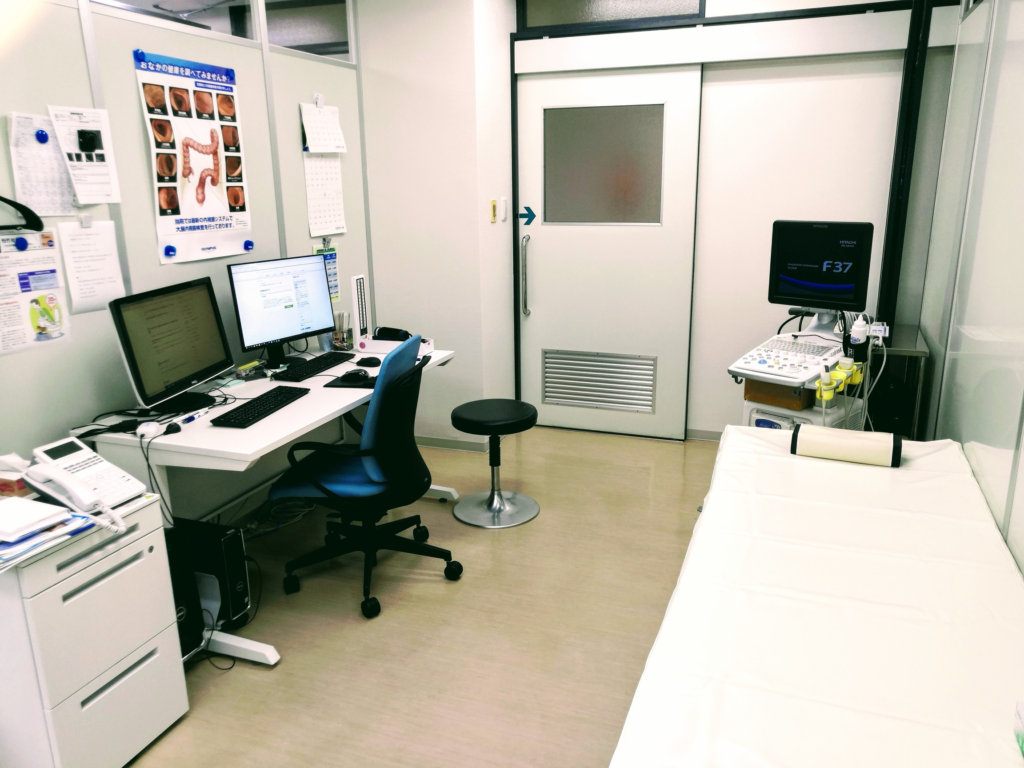 右手にはエコー機器を常備しています。『お腹を診るときには消化器内科医は聴診器の代わりにエコーをあてる』といった先輩の教えを守っています。もちろん今では総合内科医として聴診器もしっかりと使用しています。