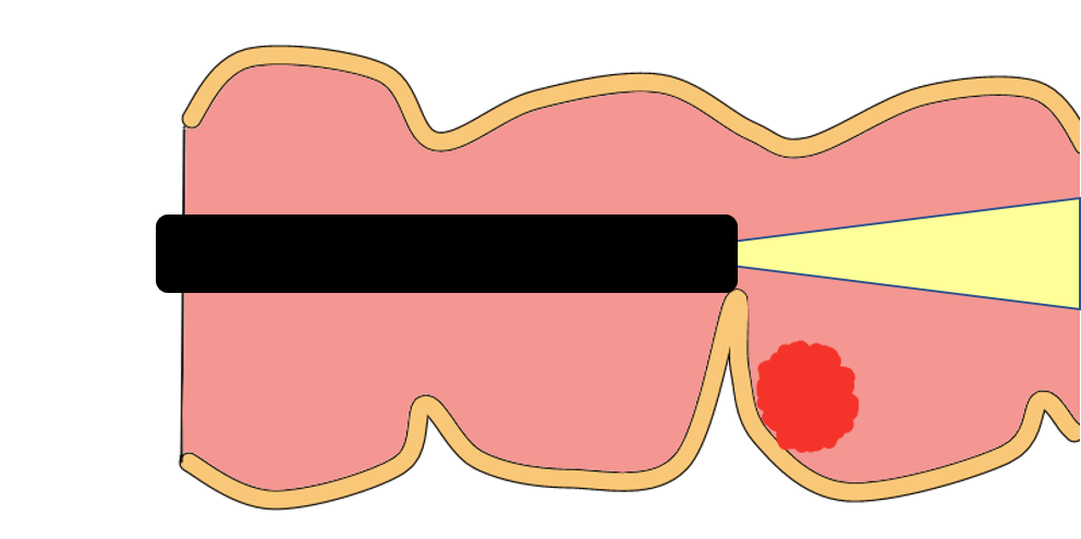 胃や大腸の”がん”はカメラで見える表面側から変化が起こります。この変化は表面の模様であったり、表面の血管であったりが”がん”特有のものとなります。この表面模様や血管を見やすくする技術がNBIです。
